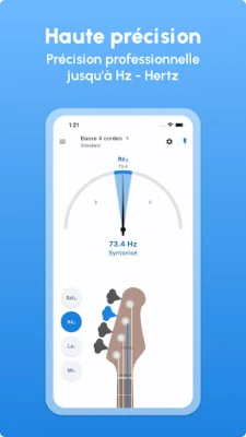 Pour répondre à toutes les exigences, cet instrument polyvalent propose deux approches d'accordage complémentaires. Pour une mise au point ultra-rapide, le mode automatique détecte instantanément la note jouée, offrant des indications claires pour un ajustement express. Mais l'Accordeur de basse va plus loin : il vous permet également d'affiner votre instrument à l'oreille. Touchez simplement une note pour entendre sa tonalité idéale, puis harmonisez votre basse à cette référence sonore. Cette fonctionnalité unique n'assure pas seulement un accordage parfait, elle développe également votre acuité auditive et votre musicalité.
