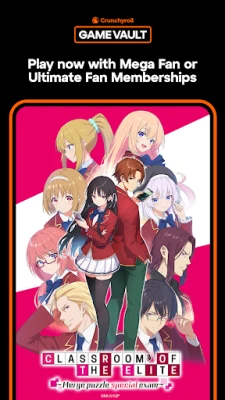 Cette œuvre premium est une exclusivité du **Crunchyroll Game Vault**, offrant une expérience sans publicité ni microtransactions pour les membres Crunchyroll Mega ou Ultimate Fan. Une immersion totale vous attend au sein d'une collection de jeux en constante expansion. Manipuler. Survivre. S'élever. Qui parviendra à dominer ce combat académique d'élite ?