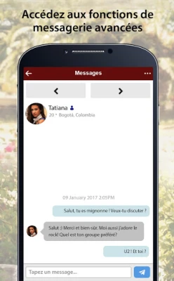 Explorez un monde de connexions authentiques avec ColombianCupid, votre passerelle privilégiée pour rencontrer des célibataires colombiens à travers le globe. Que vous soyez à la recherche d'une amitié enrichissante, d'une romance passionnée ou de l'amour de votre vie, ColombianCupid vous connecte avec des milliers de profils vérifiés, désireux de partager leur culture et leur affection. Notre application a été spécialement conçue pour unir les cœurs, où que vous soyez.
