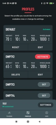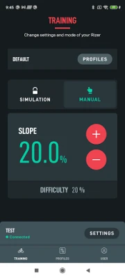 La gestion de cette technologie avancée est simplifiée par l'application compagnon, Rizer. Conçue pour une personnalisation intuitive, Rizer vous offre le contrôle total de votre simulateur de pente. Ajustez manuellement les inclinaisons et déclinaisons en cours de parcours, visualisez et modifiez le niveau de difficulté du home trainer réglé sur le logiciel de simulation. Vous avez également la possibilité de définir des limites précises pour les gradients d'ascension maximaux et les déclinaisons minimales. Rizer permet la création et la gestion de jusqu'à cinq profils distincts, adaptés à chaque utilisateur, vélo ou home trainer, garantissant une expérience sur mesure et une progression optimisée pour tous vos entraînements.