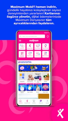 Maximum Mobil vous donne les rênes avec une gestion de carte en libre-service avancée : activez ou désactivez le sans contact, créez des cartes virtuelles sécurisées, obtenez un nouveau mot de passe, suspendez temporairement l'utilisation, définissez des restrictions de dépenses par secteur ou activez les transactions en ligne. Au-delà de ces fonctionnalités, l'application vous immerge dans l'univers de Pazarama. Découvrez un marché en ligne sécurisé proposant des centaines de catégories, où vos achats deviennent un plaisir. Réglez votre carburant sans quitter votre véhicule dans les stations partenaires comme Petrol Ofisi et OPET, et rechargez instantanément vos titres de transport, avec la possibilité de programmer des recharges automatiques et de consulter votre historique. Planifiez également vos escapades via Pazarama Tatil pour une expérience de vie complète.