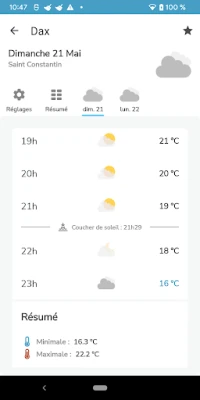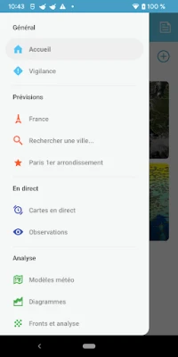 Explorez une suite exhaustive d'outils, à commencer par des milliers de cartes de prévisions issues des modèles météorologiques les plus réputés mondialement, tels que GFS, AROME, ARPEGE, et WRF, vous permettant d'analyser et d'anticiper l'évolution du temps. Suivez l'état du ciel minute par minute avec des cartes en direct affichant températures, pressions, vents, orages et images satellites pour la France et l'Europe de l'Ouest, mises à jour toutes les 15 minutes. Profitez également d'un widget redimensionnable pour un aperçu rapide directement depuis votre écran d'accueil, et naviguez confortablement grâce au mode sombre intégré. Accédez à des relevés horaires et des prévisions à 12 jours pour des milliers de villes, sans oublier les bulletins d'actualités pour rester informé des événements marquants.