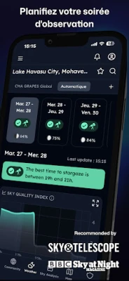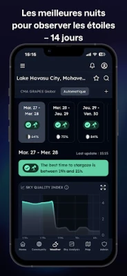 Élevez votre passion pour l'astronomie à de nouveaux sommets avec Ouranos, l'application incontournable pour les explorateurs du ciel. Ne laissez plus jamais les caprices de la météo gâcher une session d'observation. Ouranos vous fournit des prévisions astronomiques ultra-précises, scrutant des indicateurs cruciaux tels que la couverture nuageuse, le "seeing", la transparence atmosphérique, la force du vent, l'humidité et le point de rosée. Bénéficiez d'une visibilité heure par heure et d'un indice de qualité du ciel mis à jour toutes les quinze minutes, le tout optimisé spécifiquement pour le spectacle nocturne. Planifiez vos aventures cosmiques jusqu'à deux semaines à l'avance grâce à des projections détaillées, assurant des nuits étoilées inoubliables.