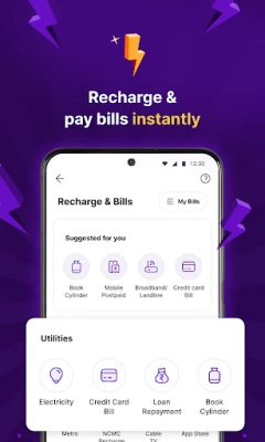 Avec PhonePe, la circulation de votre argent n'a jamais été aussi simple. Transférez des fonds entre amis ou réglez vos achats quotidiens en scannant un code QR chez les commerçants locaux. Effectuez des paiements sans effort sur vos sites de shopping, de livraison de repas ou de réservation de voyages préférés. Gérez plusieurs comptes bancaires, vérifiez vos soldes en un clin d'œil et rechargez vos services mobiles ou DTH. Payez toutes vos factures – électricité, eau, gaz, internet, carte de crédit – depuis une seule interface pratique, vous libérant des tracas administratifs.