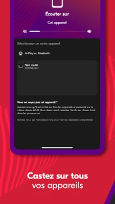 Radioplayer redéfinit l'expérience d'écoute grâce à des innovations pensées pour vous. Bénéficiez d'une écoute continue : débutez un programme sur un appareil et reprenez-le instantanément sur un autre, sans accroc. Vos favoris vous suivent partout, synchronisés sans effort entre vos smartphones, tablettes et Smart TV, incluant Android TV, Fire TV et Samsung TV. Que vous soyez en voiture via Android Auto et Smart Device Link, ou connecté via Bluetooth, Chromecast et Wear OS, Radioplayer s'adapte à votre quotidien. Découvrez de nouveaux horizons grâce à des recommandations personnalisées et ne manquez jamais un épisode de vos podcasts grâce aux notifications intelligentes.